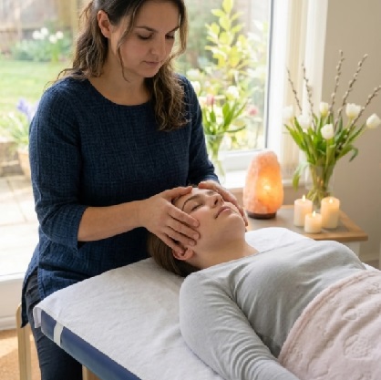 ✨ Uvolnění lebečních kostí a dutin: Jemným dotykem uvolňuji napětí v obličejové části, což podporuje drenáž a zmírňuje pocit tlaku.